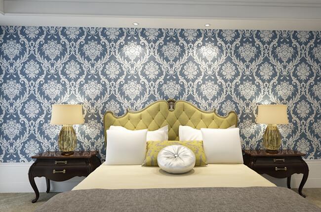 六、貼完無紡布墻紙之后,要用軟毛刷在墻面上來回滾動,清除墻面上的小氣泡,慢慢從墻邊排到外面,使墻面可以平整。